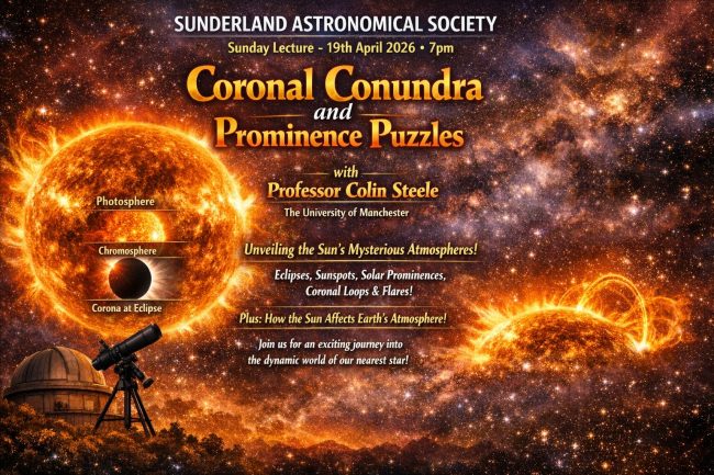 Guest Speaker Professor Colin Steele (Manchester University) will be presenting a talk on Coronal Conundra and Prominence Puzzles. Whilst the “main business” of a star is the production of energy that takes place in the core, there are many interesting processes taking place in the outer layers and atmospheres. The Sun has three layers…